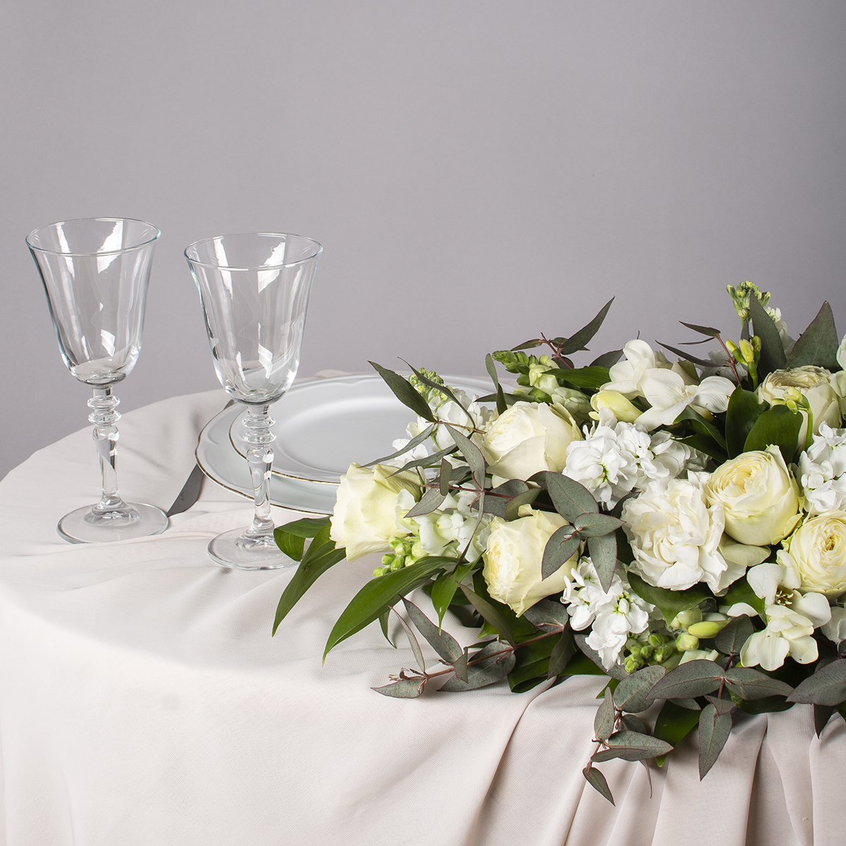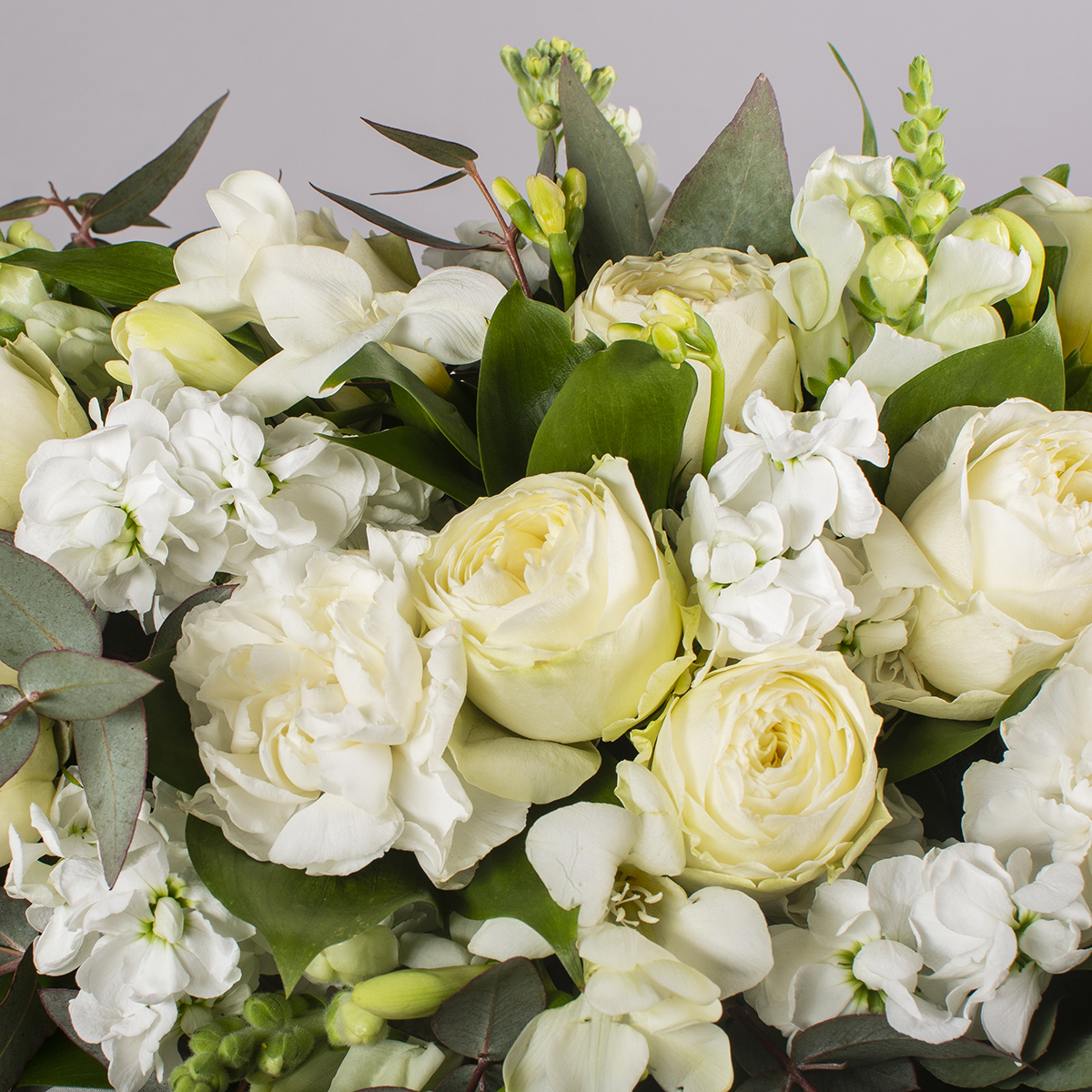Состав композиции: роза, маттиола, фрезия, эвкалипт