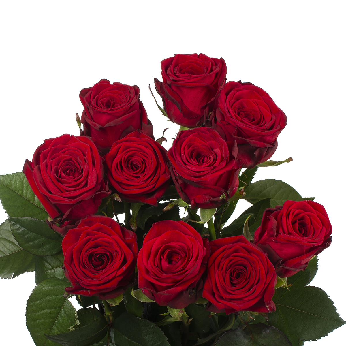 Упаковка из 10 одноголовых роз сорта Ред пэшн