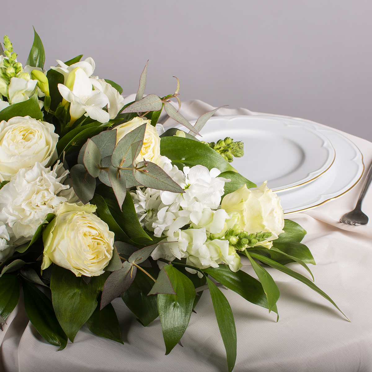 Состав композиции: роза, маттиола, фрезия, эвкалипт
