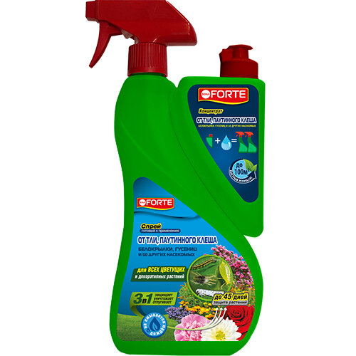 Инсектоакарицид уничтожает различные виды насекомых-вредителей и их личинки на цветах и декоративных кустарниках открытого грунта. Эффективен от тли, белокрылки, паутинного клеща, трипсов, гусениц и других насекомых.